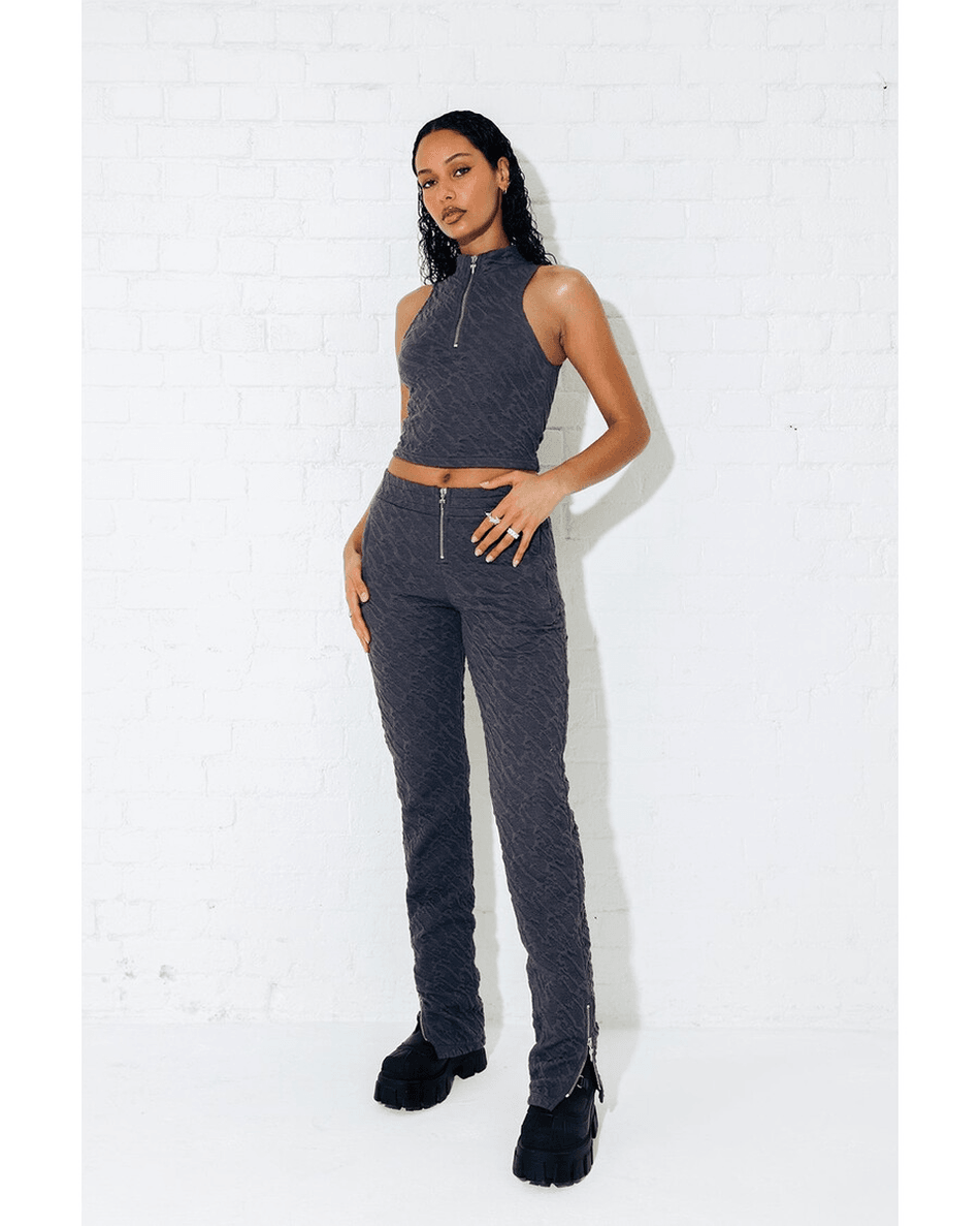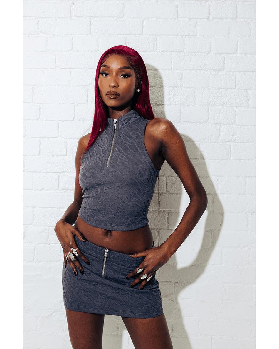 eleva Tu Estilo Con El Top Corto Ajustado Con Cremallera Jacquard Para Mujeres De Trapstar London - Gris