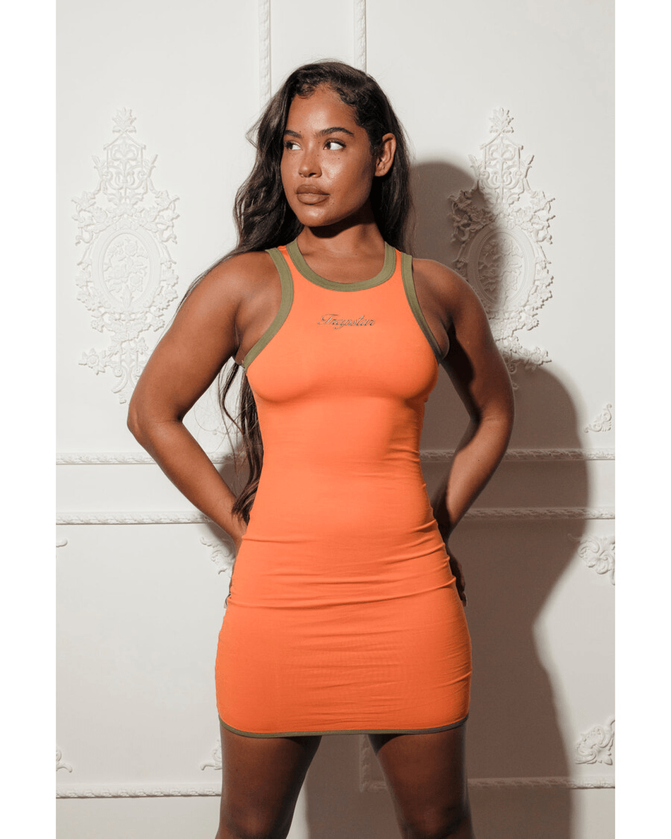 eleva Tu Guardarropa Con El vestido De Carrera De Contraste Para Mujeres De Trapstar London En Un Llamativo Naranja Y Caqui. Este Vestido Combina Perfectamente Estilo Y Comodidad, Convirtiéndolo En Una Adición Esencial A Tu Colección. Ya Sea Que Te Dirijas A Una Salida Casual O A Una Noche De Fiesta, Este Vestido Asegura Que Te Destaques.
