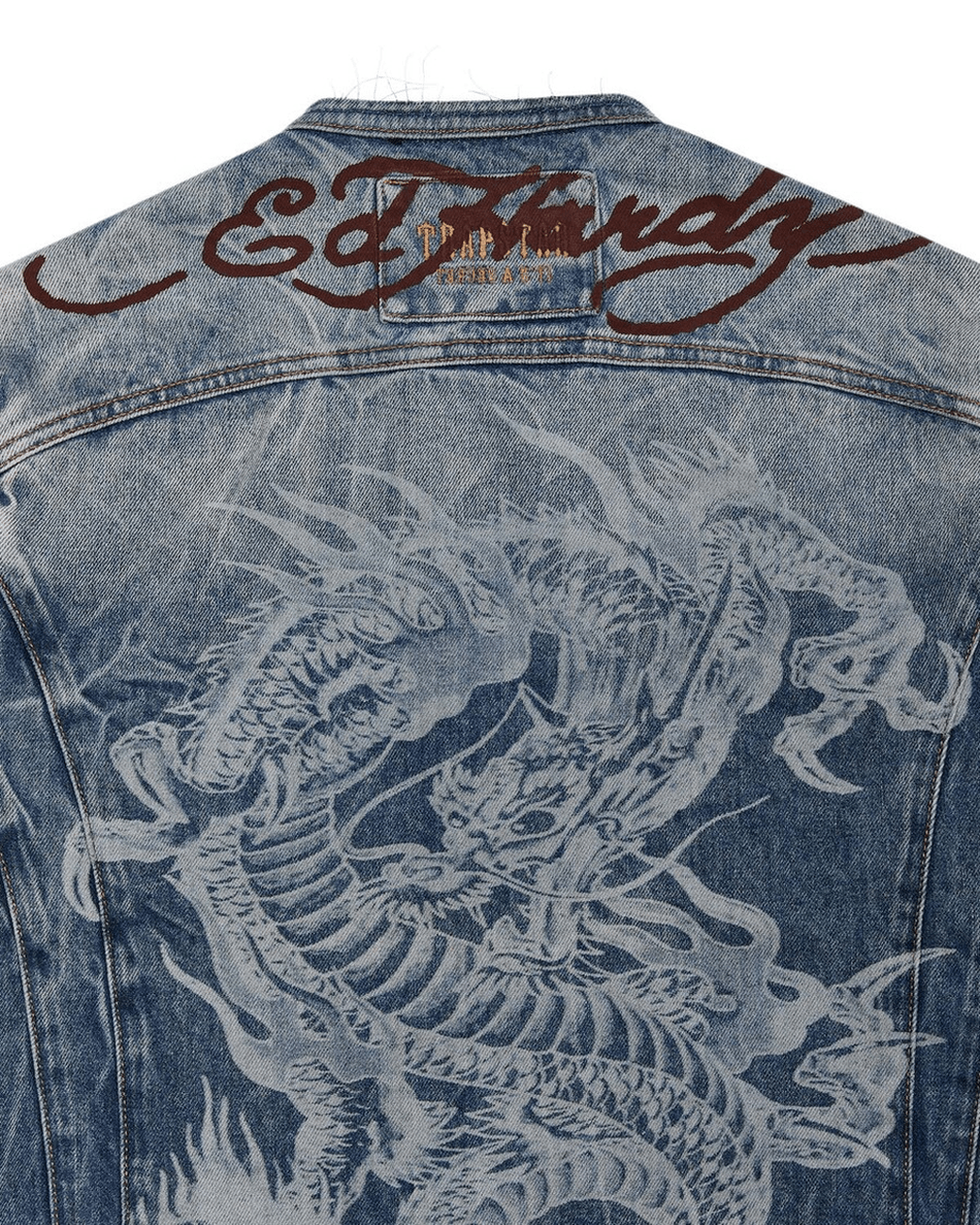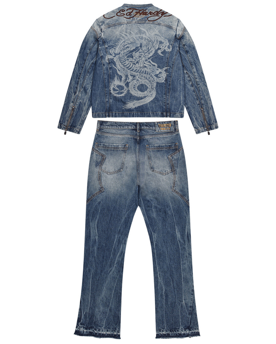 tingkatkan Gaya Anda Dengan jaket Denim Trapstar London X Ed Hardy - Biru Yang Eksklusif. Karya Unik Ini Menggabungkan Desain Yang Edgy Dengan Kualitas Premium, Menjadikannya Barang Yang Wajib Dimiliki Bagi Individu Yang Mengikuti Tren Mode.
