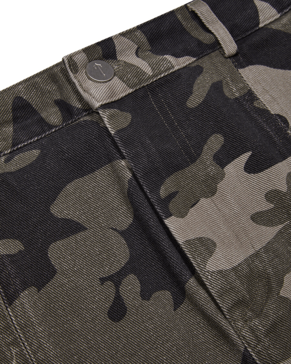 The Trapstar London Cargos - Camo features an irongate woven tab on the cargo pocket for a unique touch. The contrast gussets add depth to the design, while the deconstructed panel detailing throughout gives it a modern edge. With a branded button at the waist and a secure zip closure, these cargos are as practical as they are stylish.