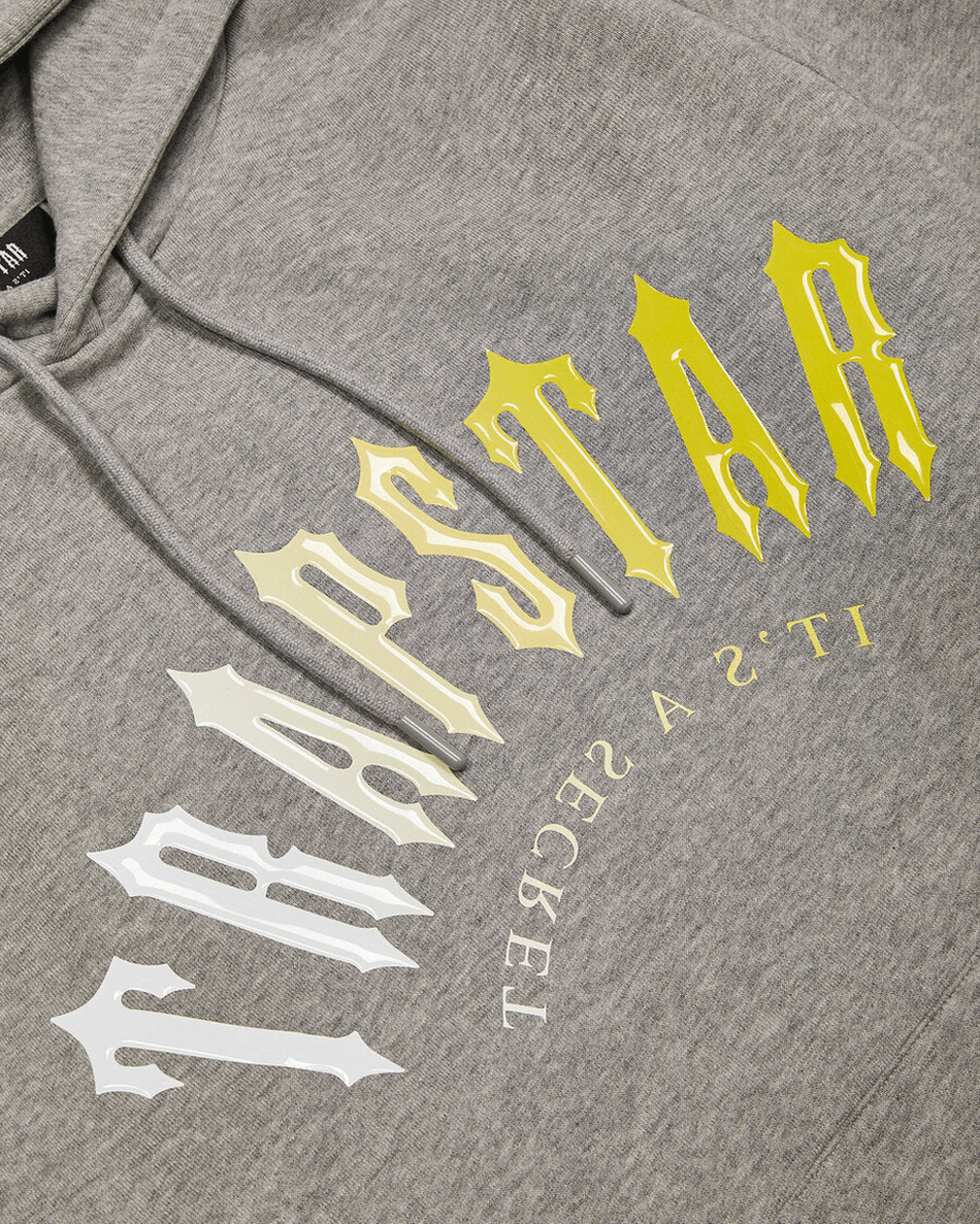 Elevate your streetwear game with the Trapstar London Decoded Hooded Gel Tracksuit in Grey/Yellow. This stylish tracksuit combines comfort and urban flair, making it a must-have for any fashion-forward individual.
