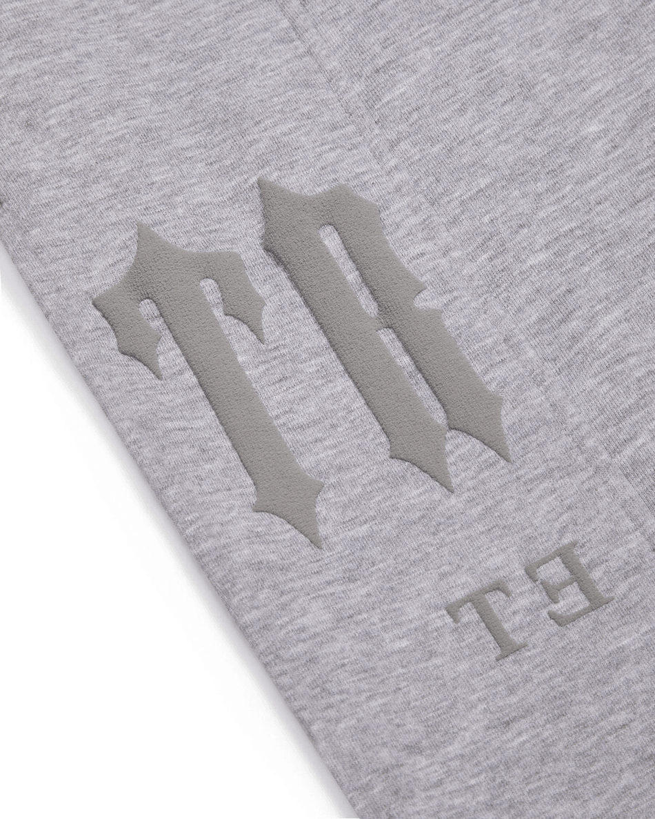 The Trapstar London Deconstructed Decoded Tracksuit - Grey is designed to turn heads. The hoodie showcases a cut into neckline panels, adorned with eye-catching puff print branding across the chest. The spacious kangaroo pocket adds functionality, making it perfect for storing essentials while on the go.