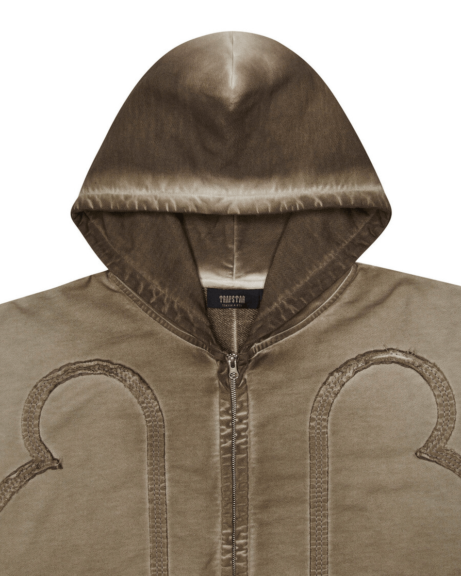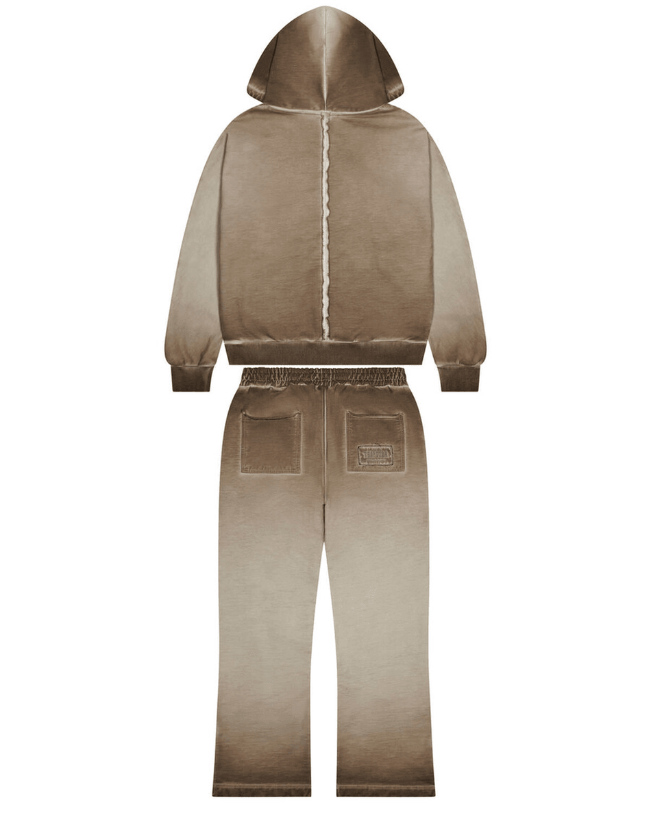The Trapstar London Irongate Seam Tracksuit - Natural is not just about looks; it's designed for versatility. The hoodie features a sleek metal zip closure and an eye-catching fleece applique, while the joggers are crafted for comfort with functional pockets and stylish zipped hems. The use of vegetal dye enhances its unique character, making this tracksuit a standout in any wardrobe.