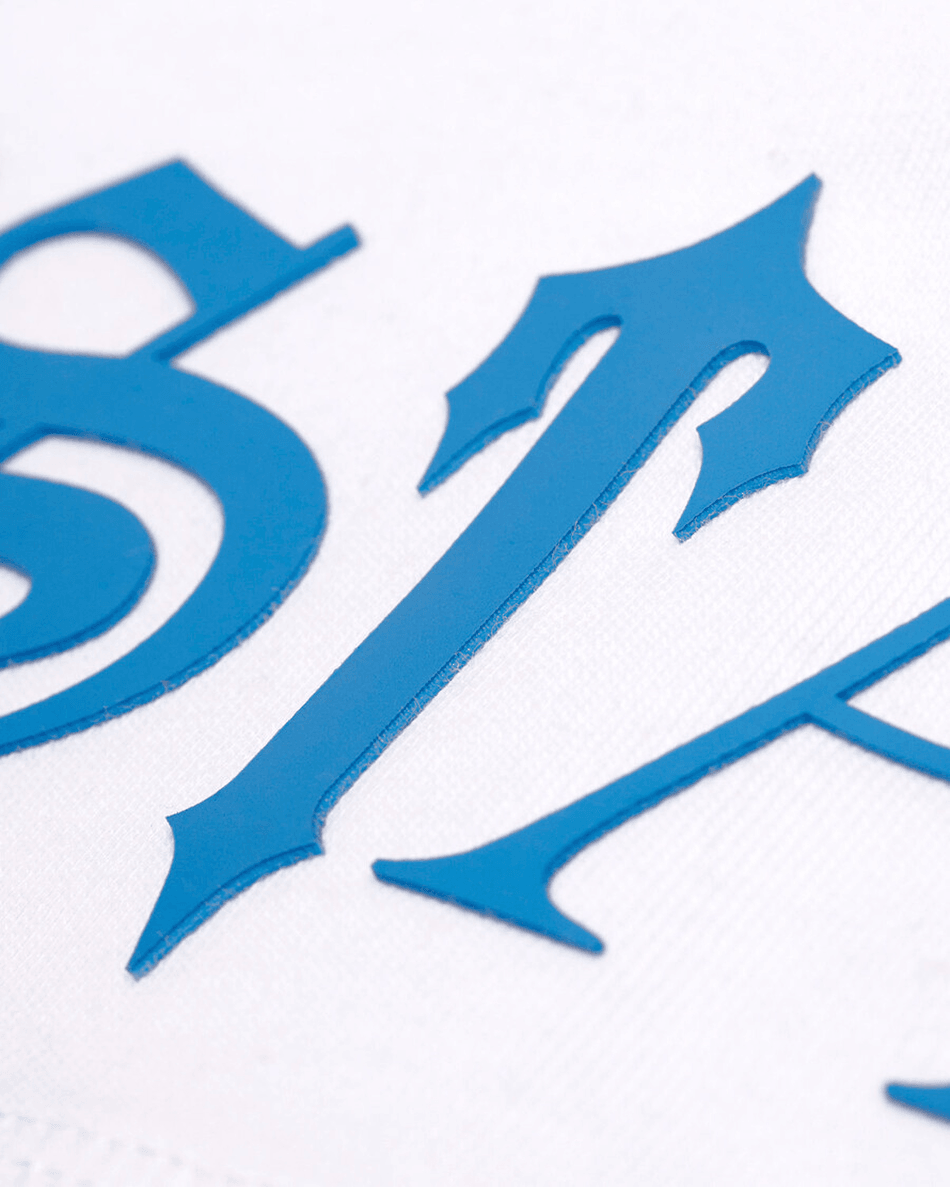 Step up your wardrobe game with the Trapstar London Script Tee - White/Blue. This trendy short sleeve t-shirt is perfect for anyone looking to showcase their unique style while enjoying maximum comfort.
