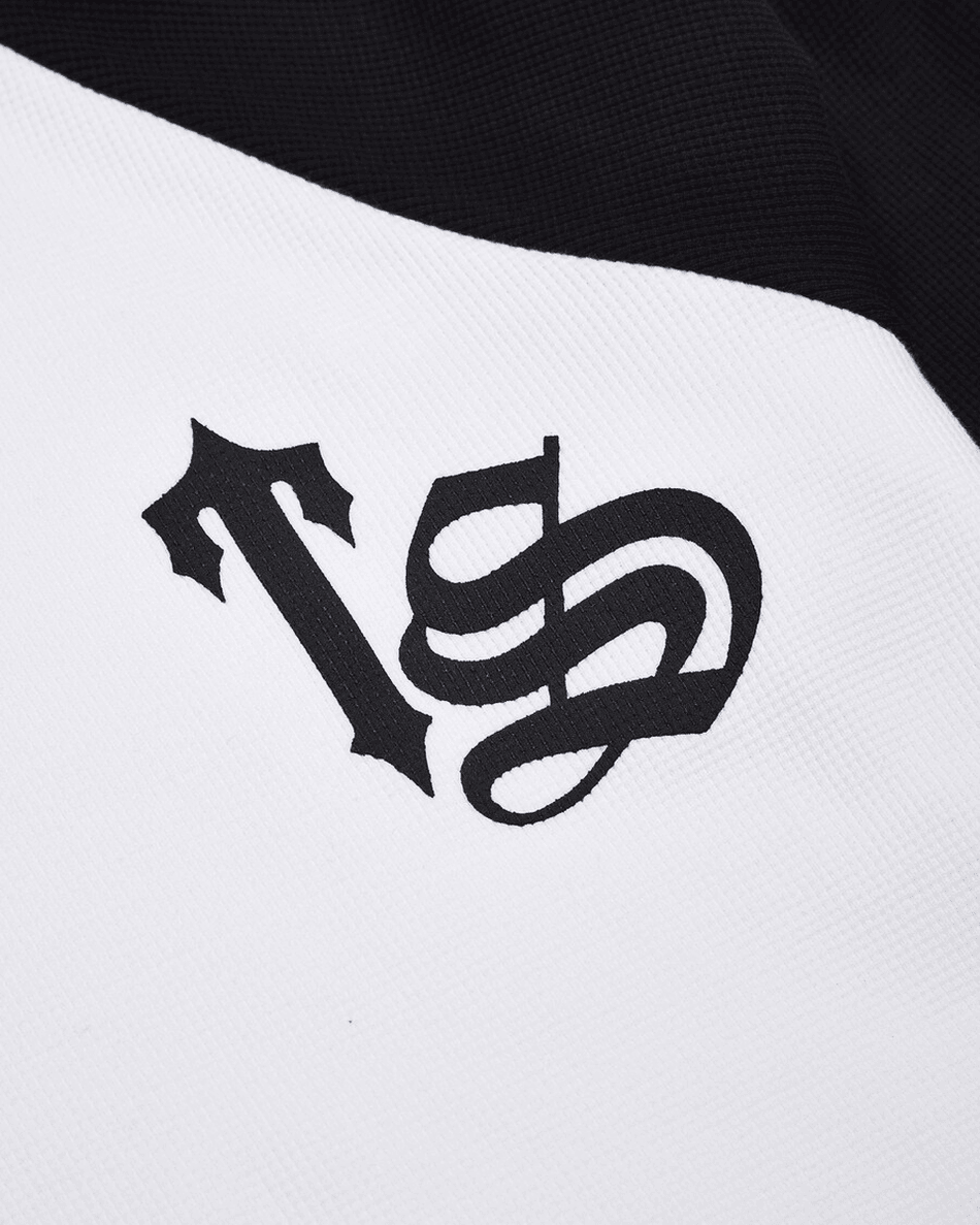- Unique Design: Features a distinctive raised “TS” script puff print logo on the left chest and both sleeves.