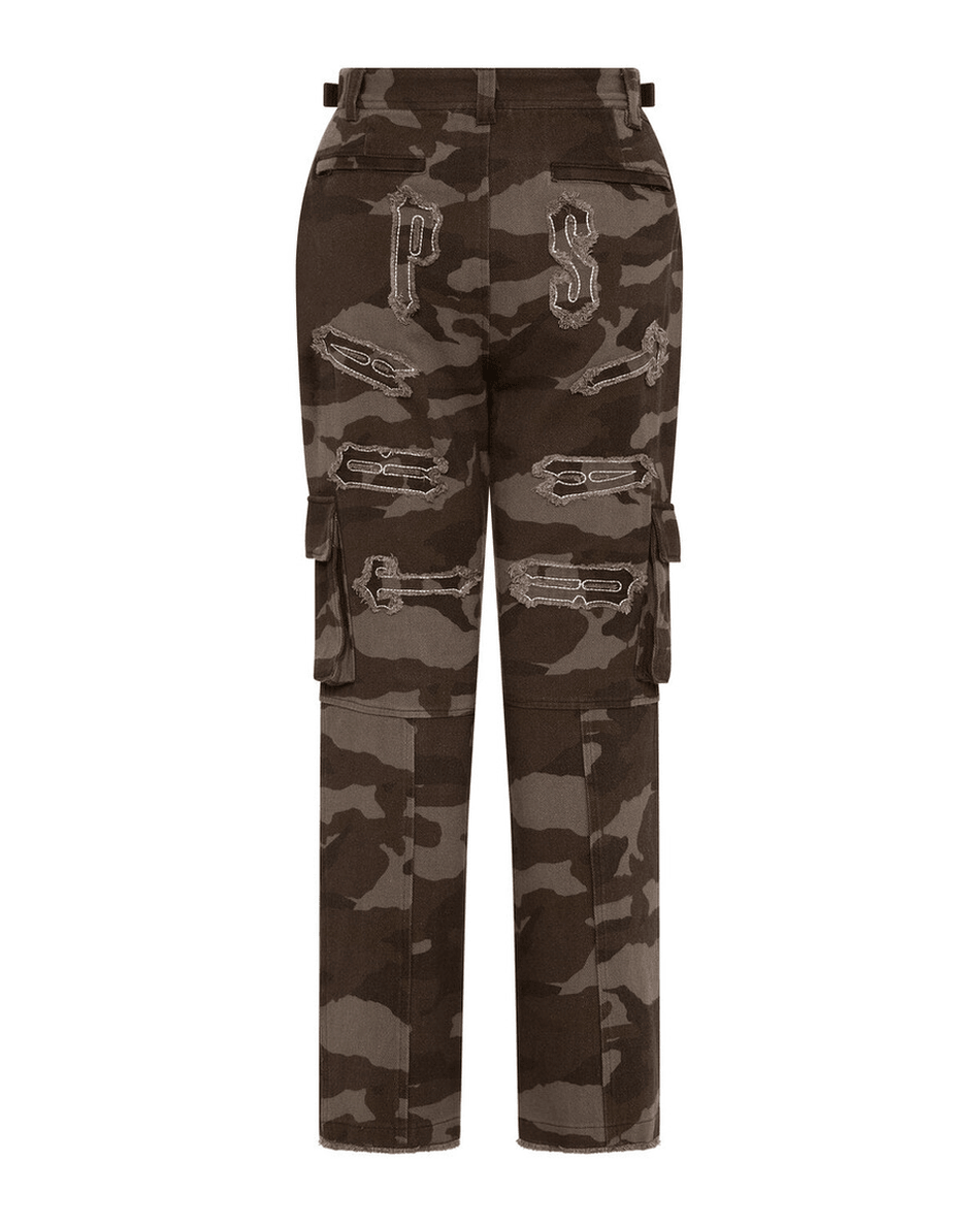 Discover the perfect blend of comfort and style with the Trapstar London Women's Arch Applique Distressed Denim Cargo Pants - Brown Camo. Crafted for the modern woman, these pants are designed to make a statement while providing ultimate flexibility.