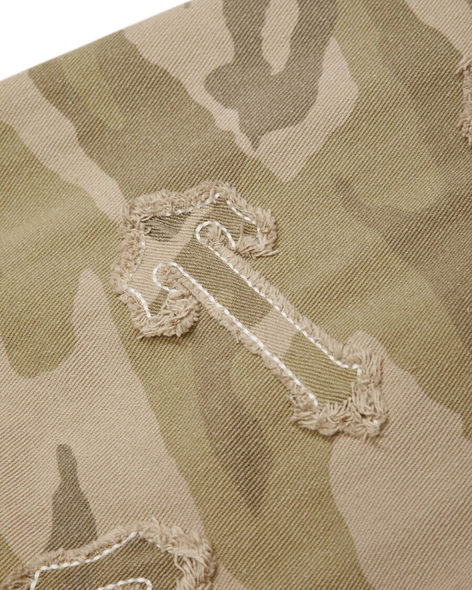 Don't miss out on adding the Trapstar London Women's Arch Applique Distressed Denim Cargo Pants - Desert Camo to your collection. Shop now and redefine your streetwear style!