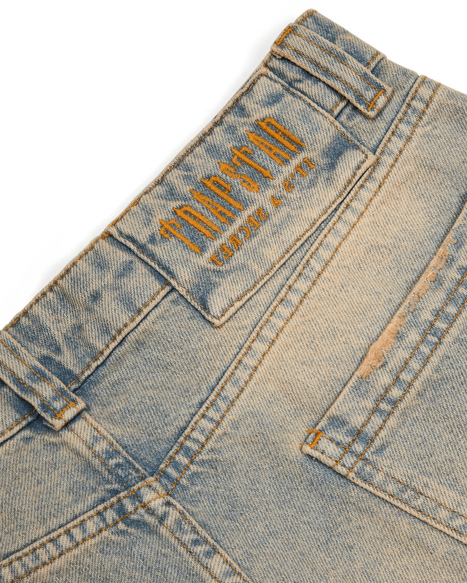 Elevate your style with the Trapstar London Women's Irongate Panel Denim Jeans in a stunning sandy blue hue. Designed for the modern woman, these jeans combine comfort and fashion, making them a must-have addition to your wardrobe.
