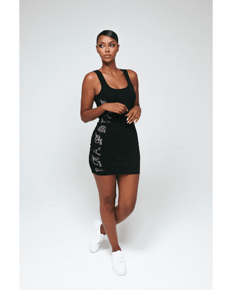 Elevate your summer wardrobe with the Trapstar London Women's Script Denim Applique Tank Dress - Black. This stylish tank dress combines comfort and chic design, perfect for any casual outing or night out.