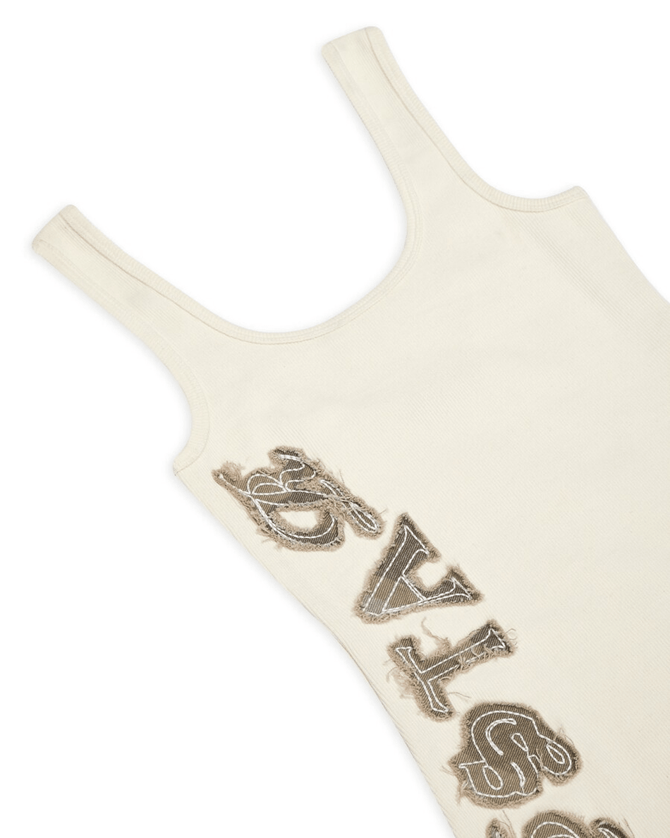 Elevate Your Style with the Trapstar London Women's Script Denim Applique Tank Dress - Off White