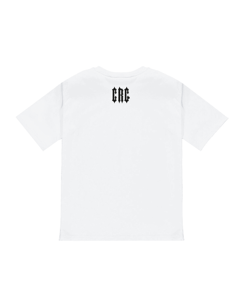 The Trapstar London x Central Cee Irongate Tee CD & Cassette Bundle - White features a striking title graphic screen print on the front and a CRG screen print on the back. This regular fit tee offers a comfortable and stylish look, making it ideal for everyday wear or music events. Pre-order now to secure your bundle, which will be shipped in two separate packages, with the album and cassette arriving after the official release on January 24, 2025.