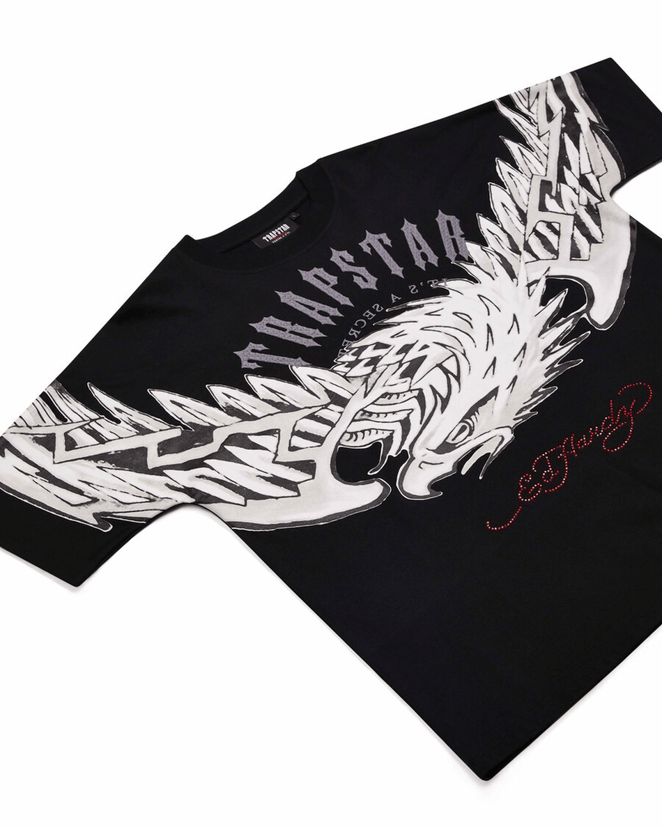 Elevate your streetwear game with the Trapstar London x Ed Hardy Arched Eagle Tee - Black. This unique collaboration combines iconic Ed Hardy artwork with Trapstar's edgy style, making it a must-have for fashion enthusiasts.