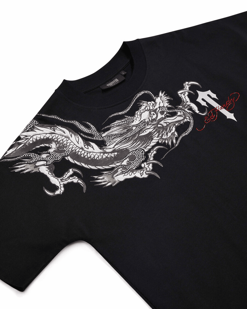 Elevate your streetwear game with the Trapstar London x Ed Hardy Dragon Tee with Diamanté - Black. This unique tee combines iconic designs with luxurious details, making it a must-have for fashion enthusiasts and trendsetters alike.